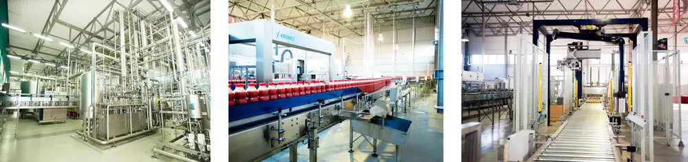Розлив соковой продукции и напитков осуществляется на скоростных линиях, установленных на нашем заводе лучшим немецким производителем оборудования – фирмой «KRONES AG». Производственные мощности составляют 360 млн. литров в год. Ассортимент выпускаемой продукции более 80 видов.